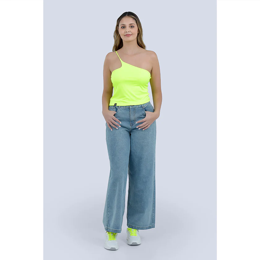 Blusa ROOTT+CO sin mangas. Su tono verde fosforescente da un efecto visual impactante que capturará todas las miradas. Confeccionada con un material suave y elástico, esta blusa ofrece una comodidad inigualable y un ajuste perfecto.