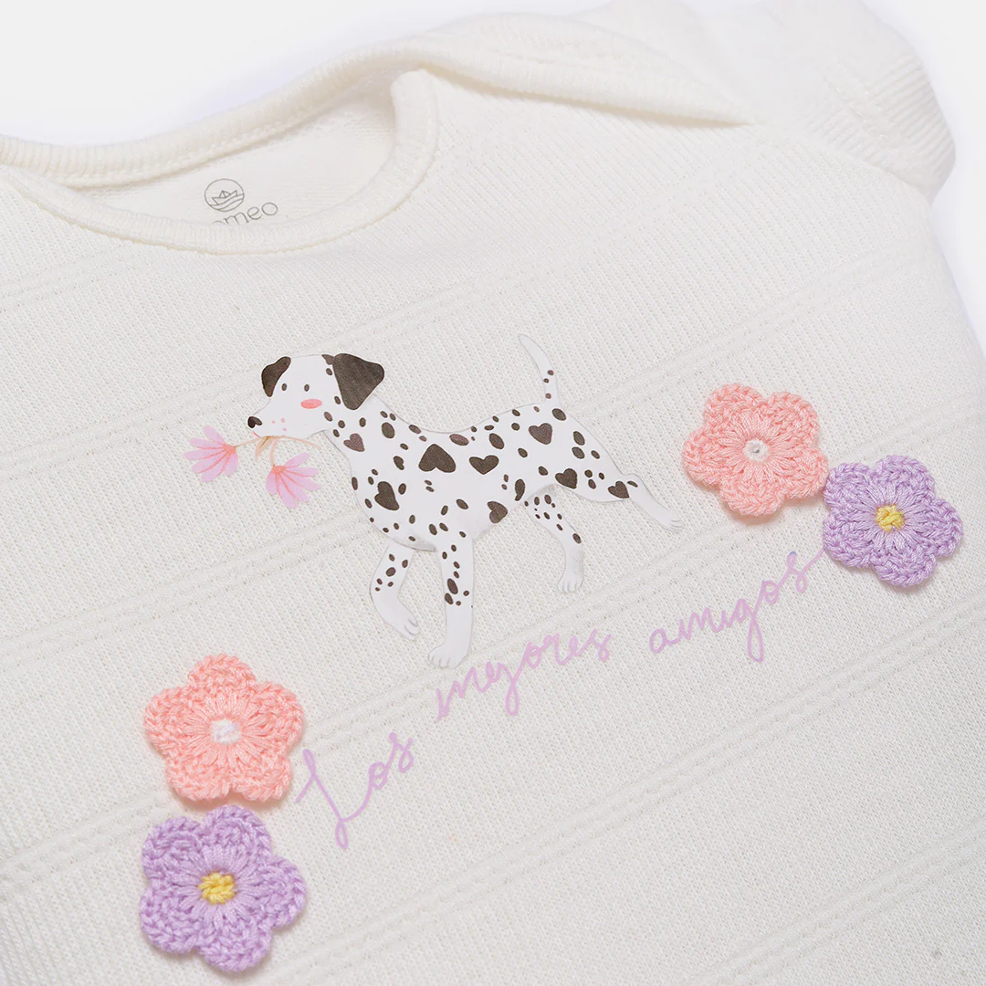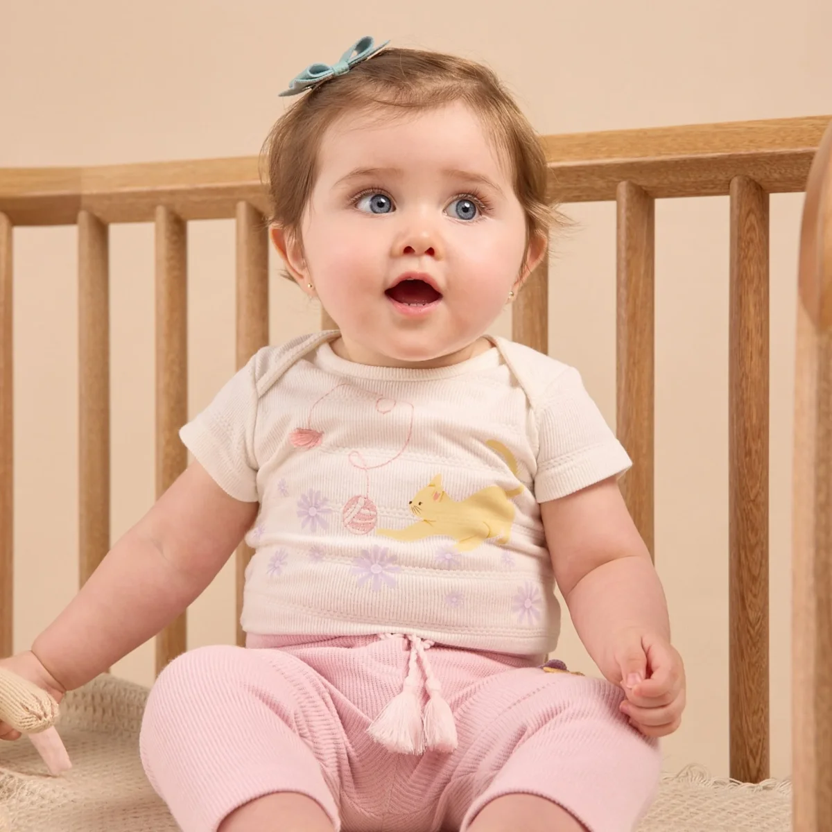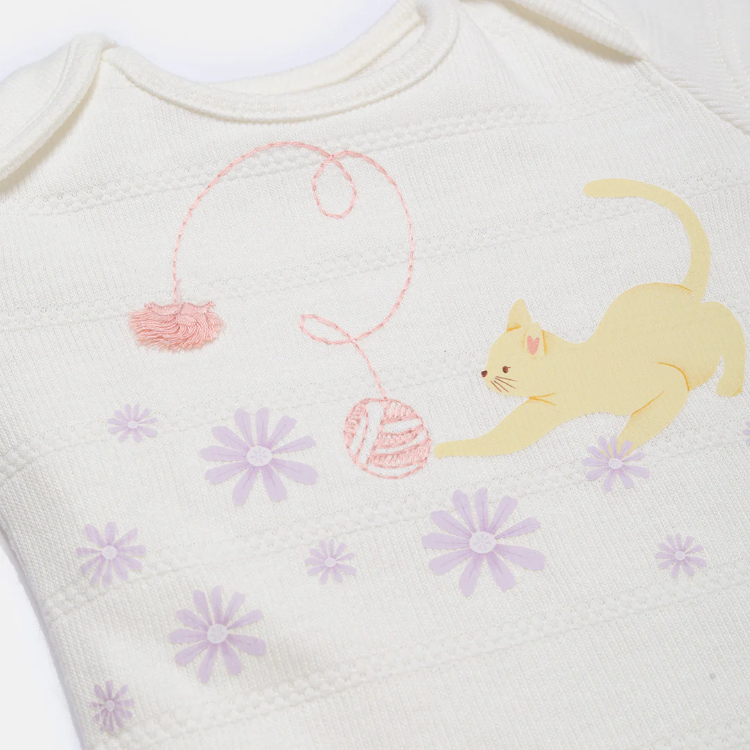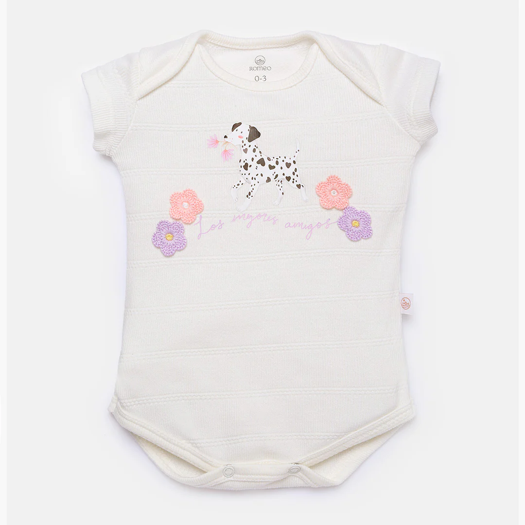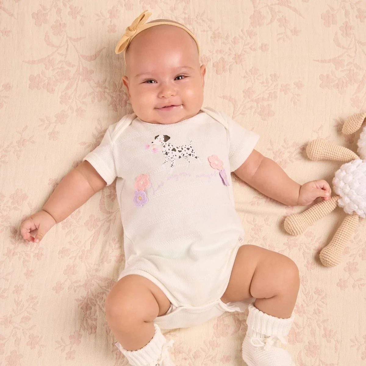 Body de manga corta para bebé con estampado, detalles en 3D y bordados. Tiene hombro adelantado y broches en la entrepierna para mayor facilidad a la hora de vestir a tu bebé. Tela fresca, cómoda y suave, perfecta para el día a día.