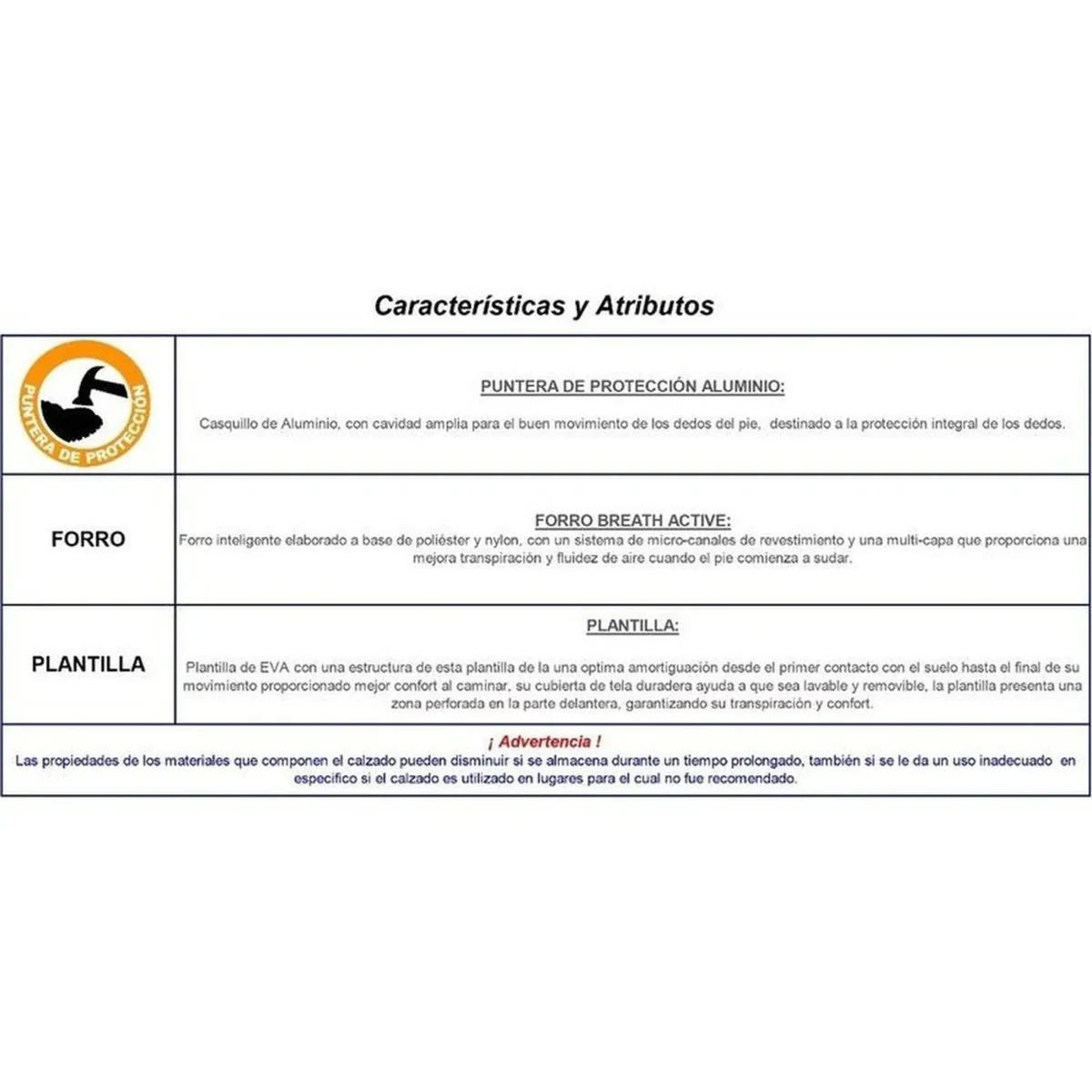 PLANTILLA: EVA (Absorción de impacto, Confortable, Antifatiga, la cubierta de tela duradera es lavable y removible)