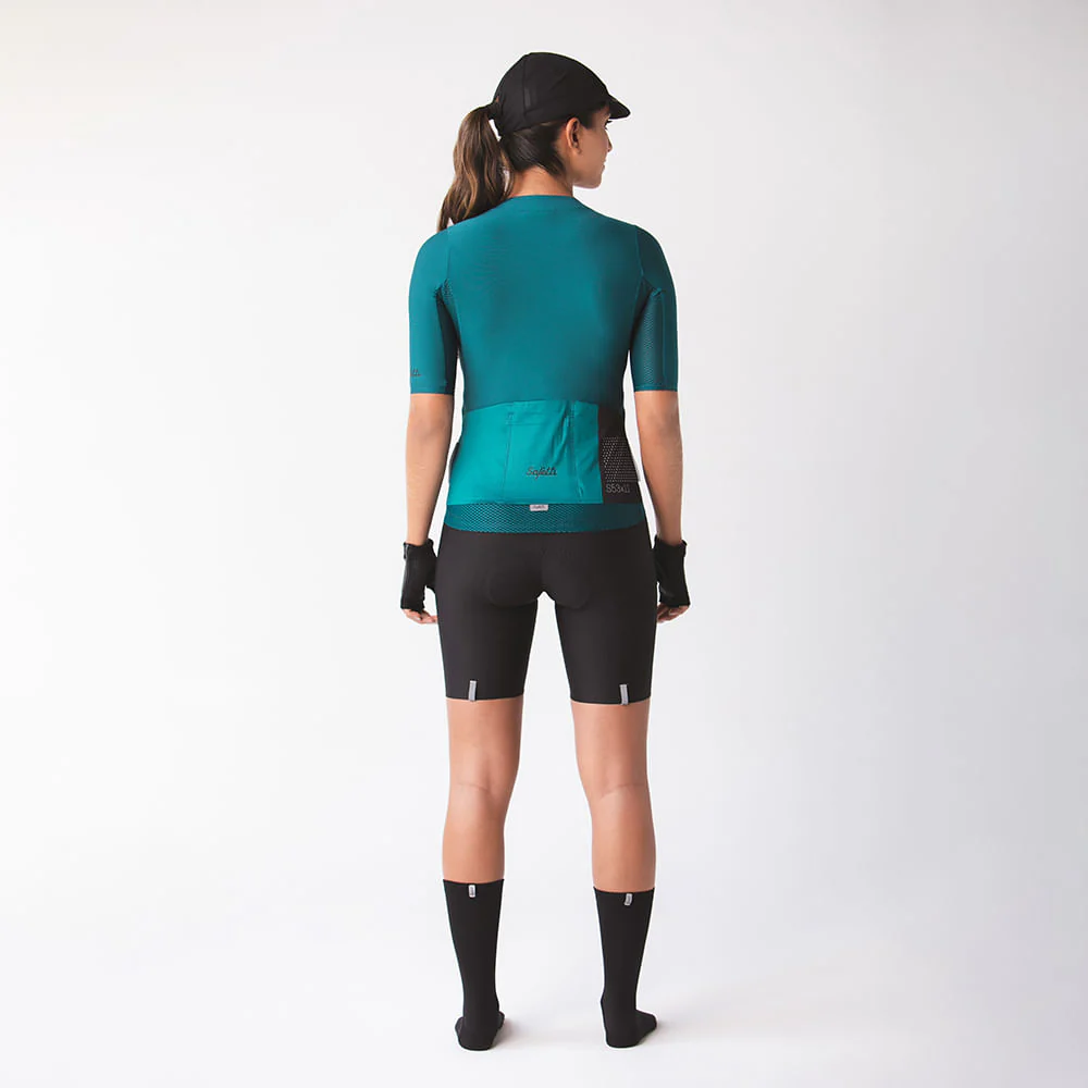 Esta camisa ergonómica, aerodinámica y ligera, se ajusta perfectamente al cuerpo, reduciendo la resistencia al viento y mejorando tu eficiencia en cada pedalada. Las costuras planas y los materiales elásticos garantizan libertad de movimiento sin restricciones, permitiéndote rendir al máximo con total comodidad. La combinación de tejidos con transporte de humedad, secado rápido y control de olores, junto con la protección solar UPF 30-50, te mantienen fresco y protegido. Las mangas y ruedo con terminación termosellada aumentan la comodidad. Los tres bolsillos posteriores y un cuarto bolsillo repelente al agua ofrecen espacio seguro para tus pertenencias.