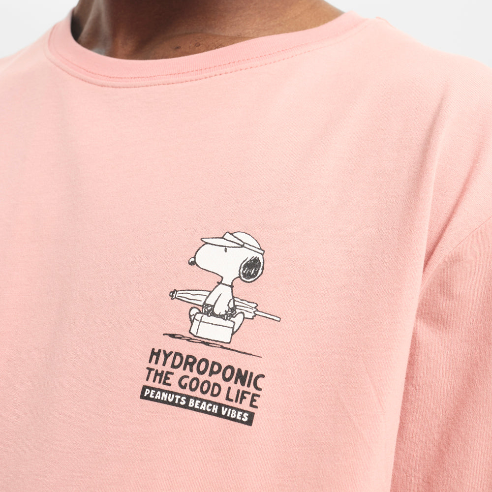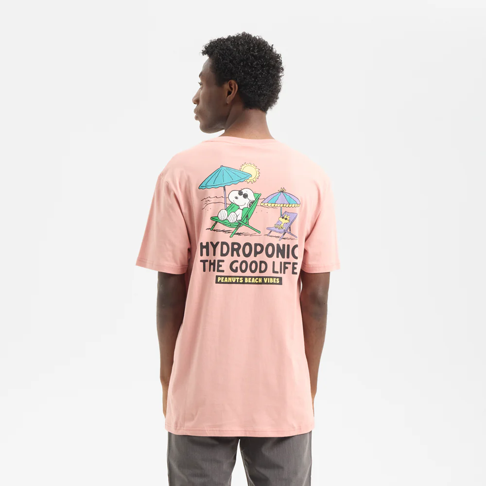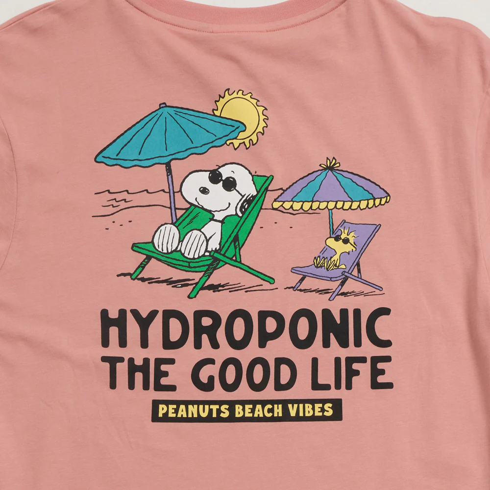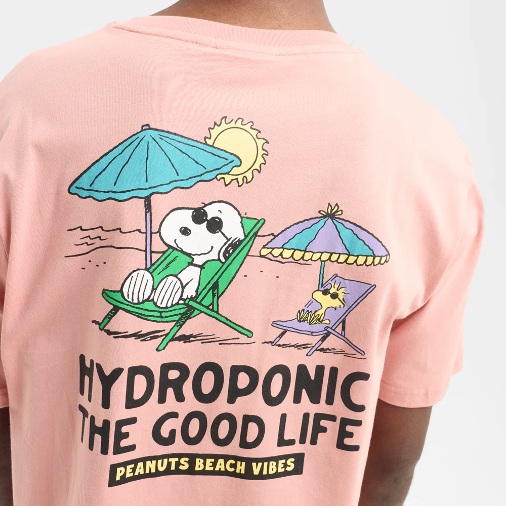 La Hydroponic x Peanuts Good Life Tee es la colaboración oficial entre Hydroponic y el icónico universo Peanuts. Camiseta de manga corta exclusiva con serigrafía en pecho y espalda, en peach blossom suave con mensaje Good Life.