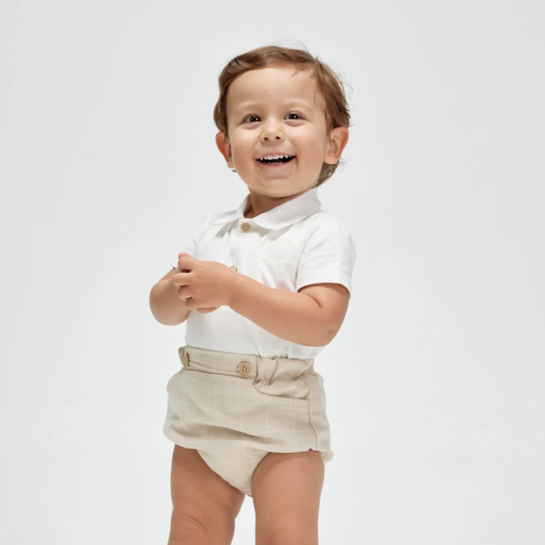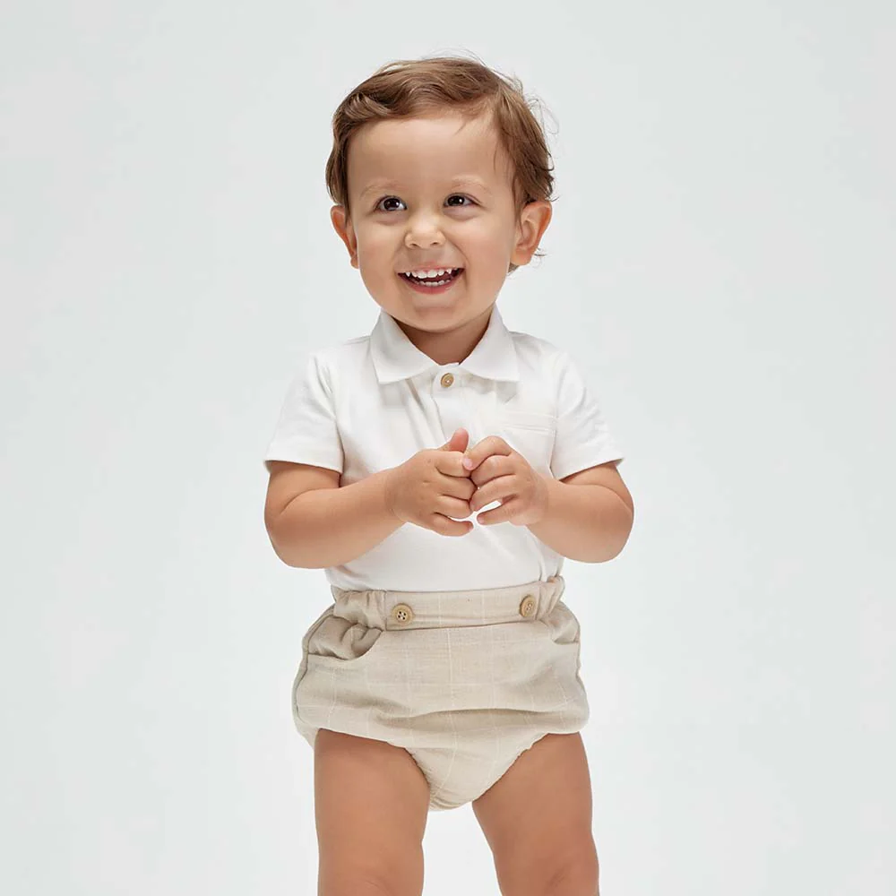 Camiseta manga corta con cuello, ideal para combinarla con nuestro cubre pañal Santelmo Natural.