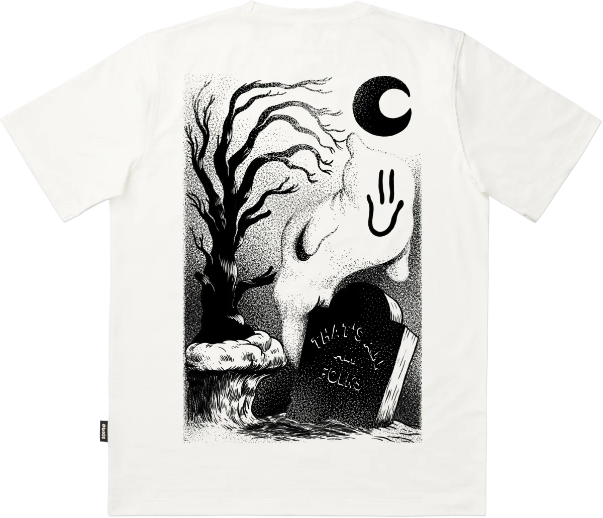 La camiseta Ghost Cliff de The Dudes en blanco es una prenda que combina estilo urbano y arte gráfico. Con un dibujo grande en la espalda y un detalle pequeño en el pecho, esta tee de manga corta aporta personalidad y actitud a tu look.