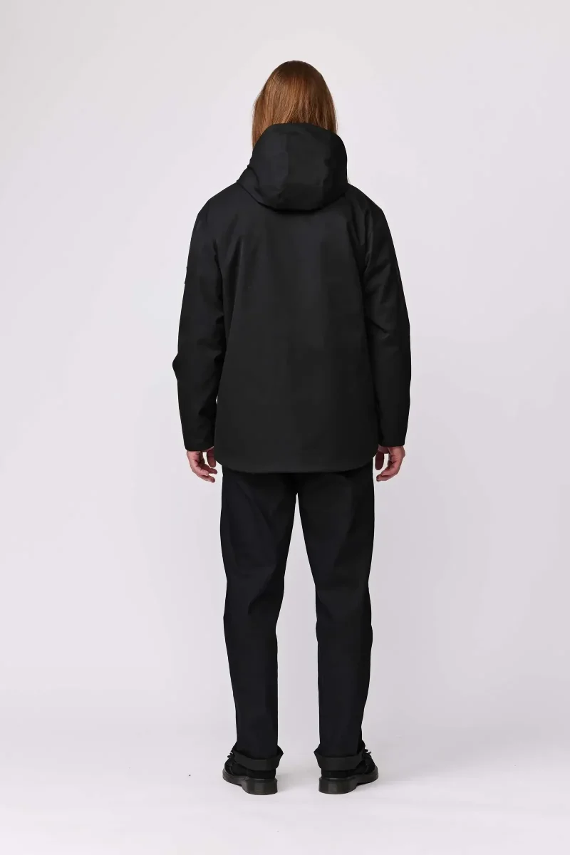 - Logotipo de la bandera bordado en el puño derecho, parche de silicona Makia en la manga izquierda, ‘Through the rough seas’ -bordado en el cortavientos