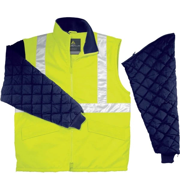 Chaqueta 2 en 1 con mangas cálidas desmontables con visibilidad diurna y nocturna.