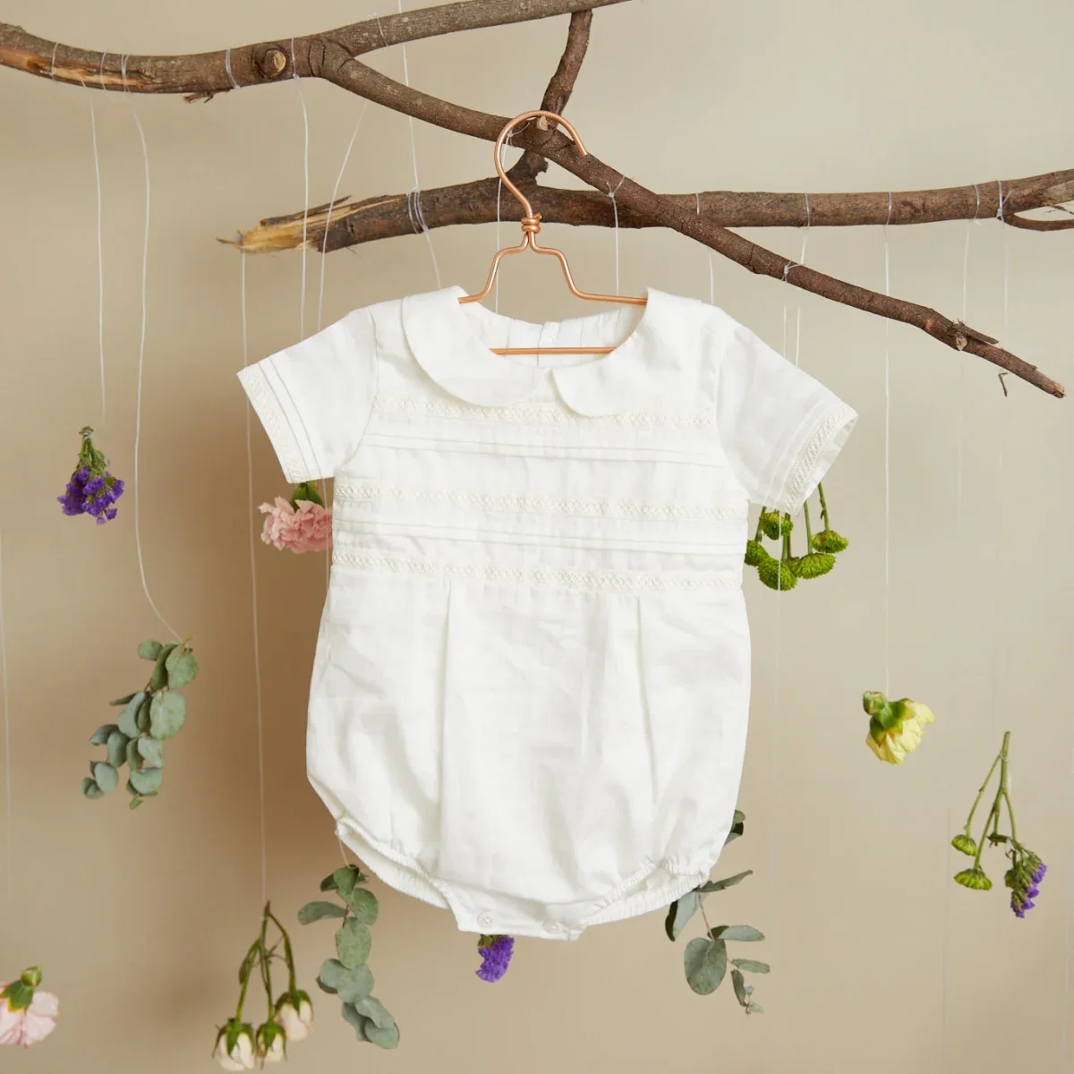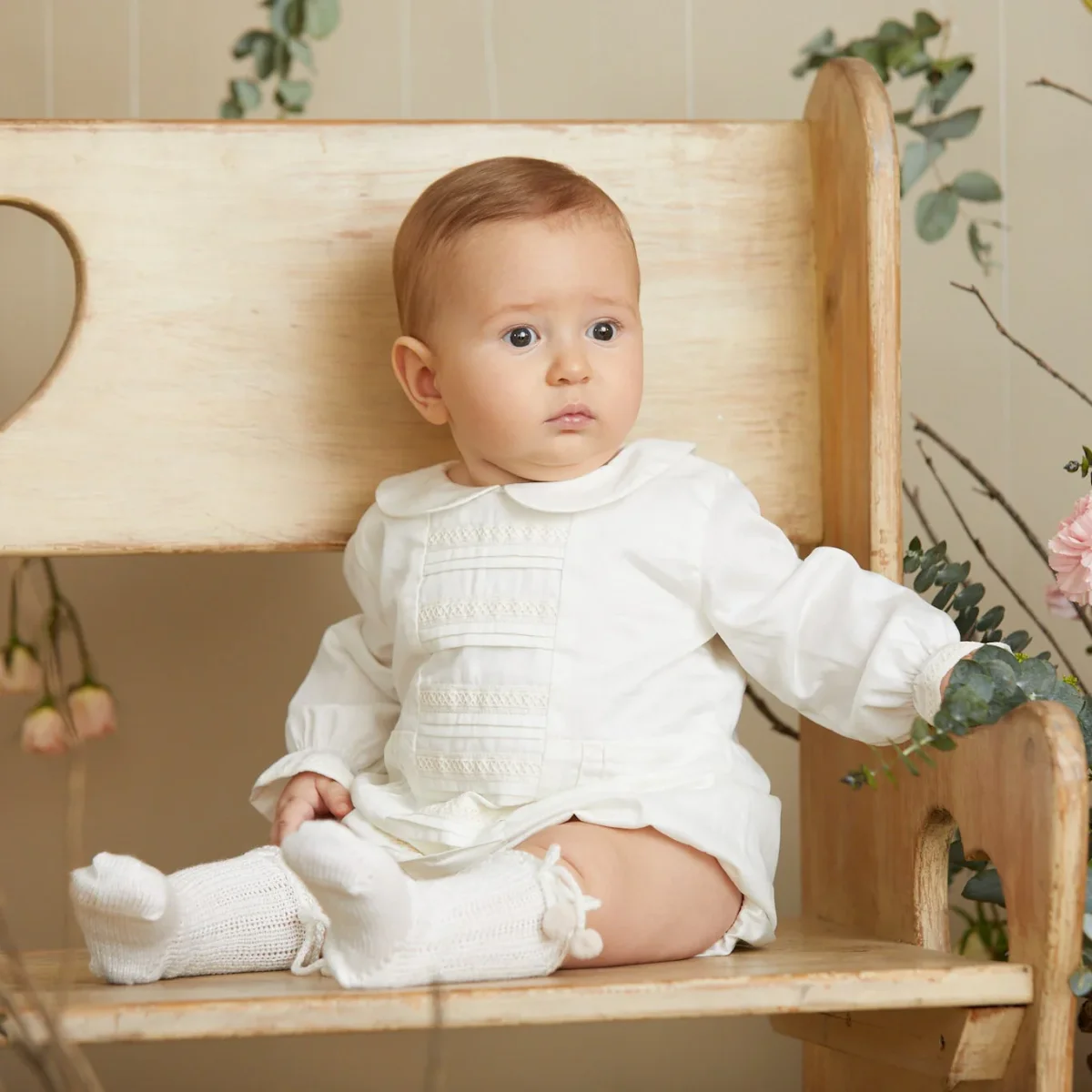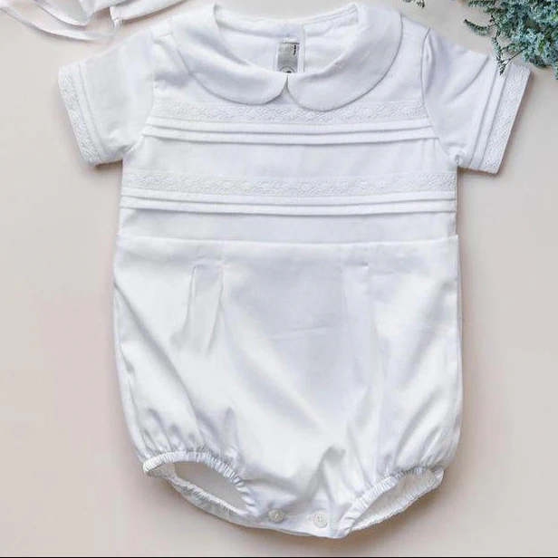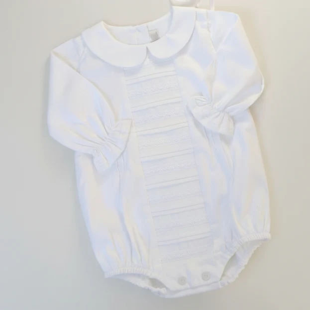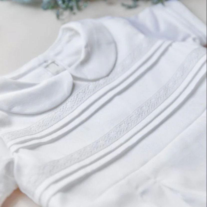 Globo exclusivo y delicado diseñado especialmente para el bautizo de tu bebé. Elaborado completamente en lino blanco 100% con forro de algodón, combina elegancia y comodidad. Una prenda perfecta para acompañar uno de los momentos más significativos de la vida de tu bebé. Elígelo manga corta o larga según tu preferencia.