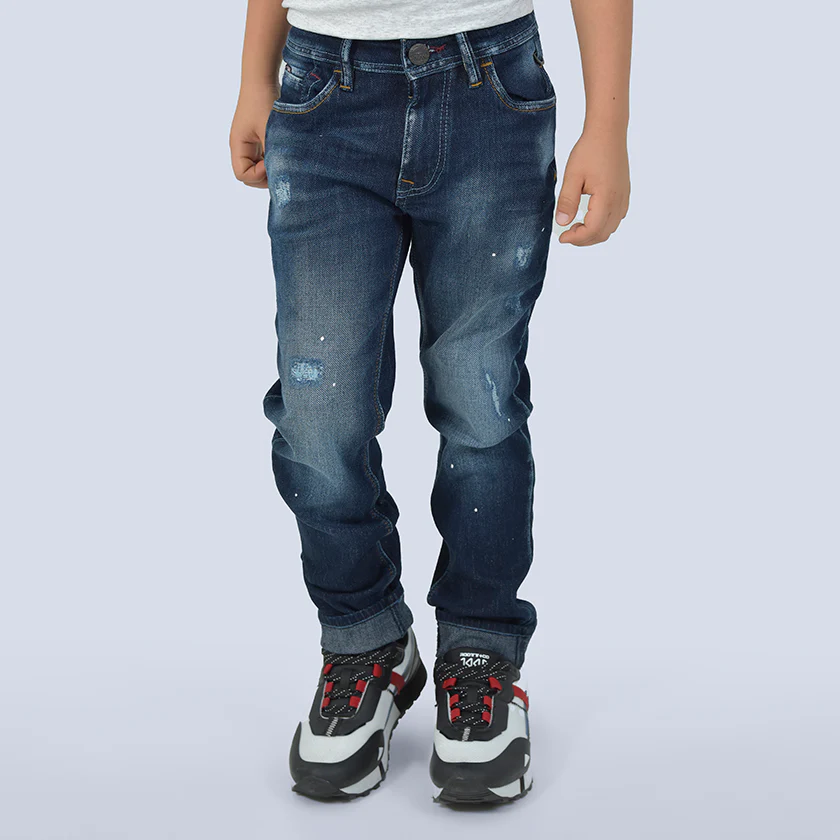 Jeans para niño. Presentan silueta de corte recto en la pierna y bota, luce marquilla de la marca en la parte posterior, las líneas pespunteadas y redondeadas de los bolsillos están reforzadas.
