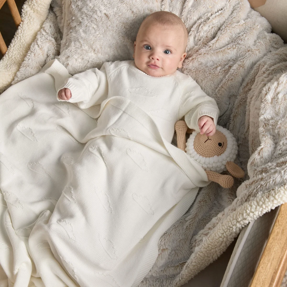 Manta de nubes en color crudo. Precisa para combinar con el enterizo nubes. Hecha en 100% algodón. Tamaño: 90 cms x 70 cms.