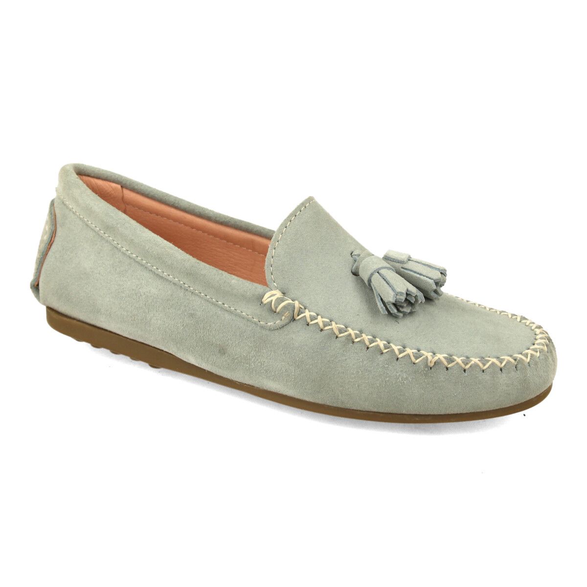 Disfruta del equilibrio perfecto entre estilo y comodidad con estos mocasines de mujer en color verde menta. Confeccionados en ante suave de alta calidad, presentan un diseño atemporal con borlas decorativas en el empeine y costuras vistas en contraste que realzan su elegancia. Ideales para primavera y verano, su tonalidad fresca combina fácilmente con looks casuales y semi-formales. La plantilla acolchada y la suela flexible antideslizante ofrecen confort durante todo el día, convirtiéndolos en una opción práctica y con estilo para el día a día. Perfectos para caminar, trabajar o salir, estos mocasines se adaptan a cualquier ocasión.