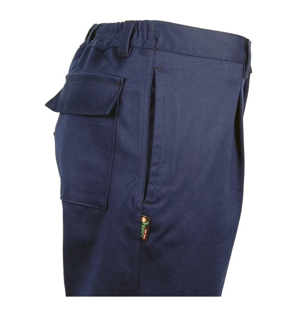 Con las mismas características que la ref. 009. Esta prenda cuidadosamente confeccionada, con 5 bolsillos, cosido con el resistente hilo de aramida, nos ofrece un “plus” de diseño y calidad al incorporar los dos bolsillos laterales. Ideal para sector gas-petróleo, eléctrico y siderúrgico.