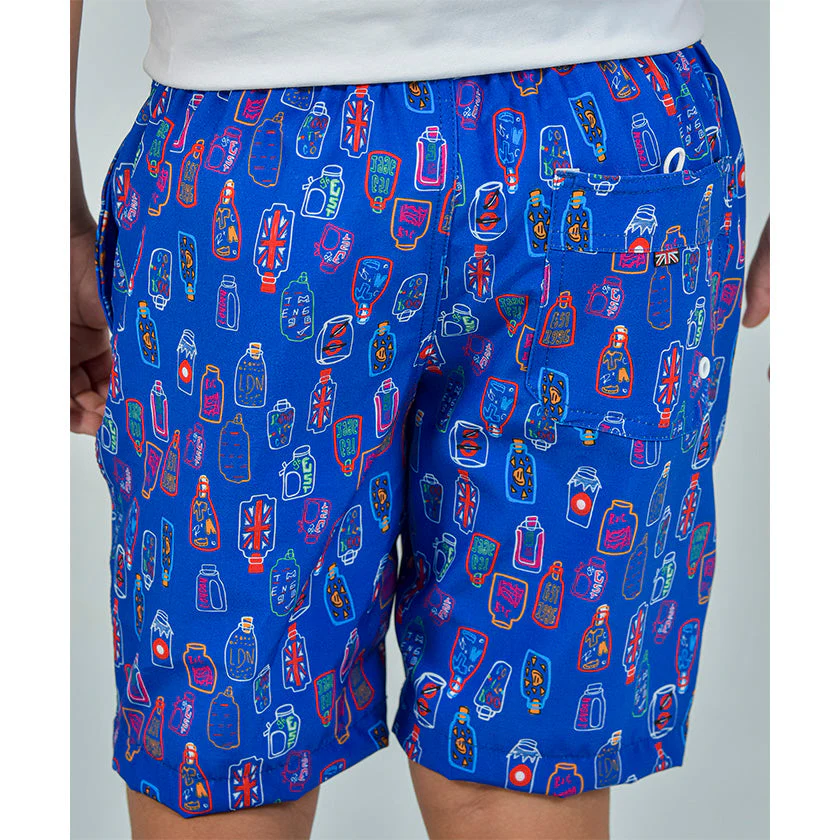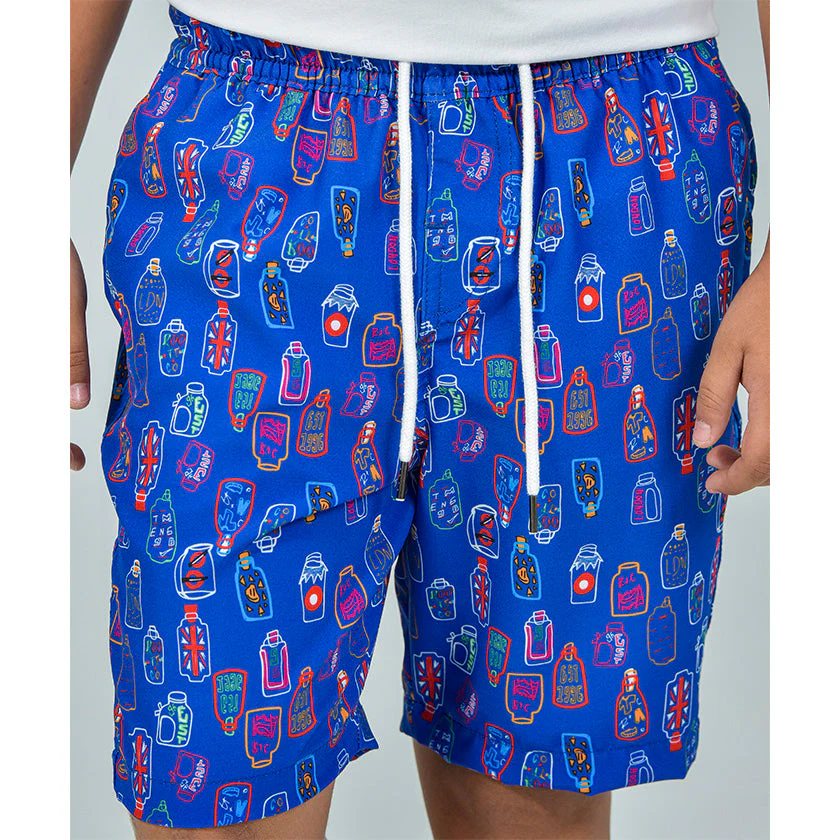 Pantaloneta playera para niño. Presenta el sello ROOTT+CO y la marca bandera en el bolsillo posterior, cómodo ligeramente arriba de la rodilla, luce cordones ajustables.