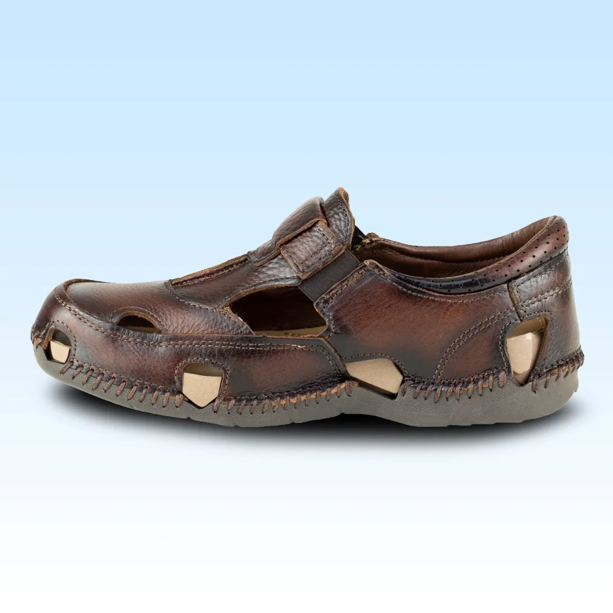 SANDALIA PARA CABALLERO ESTILO HUARACHE EN PIEL VACUNO LOBO SOLO CON PLANTILLA REMOVIBLE