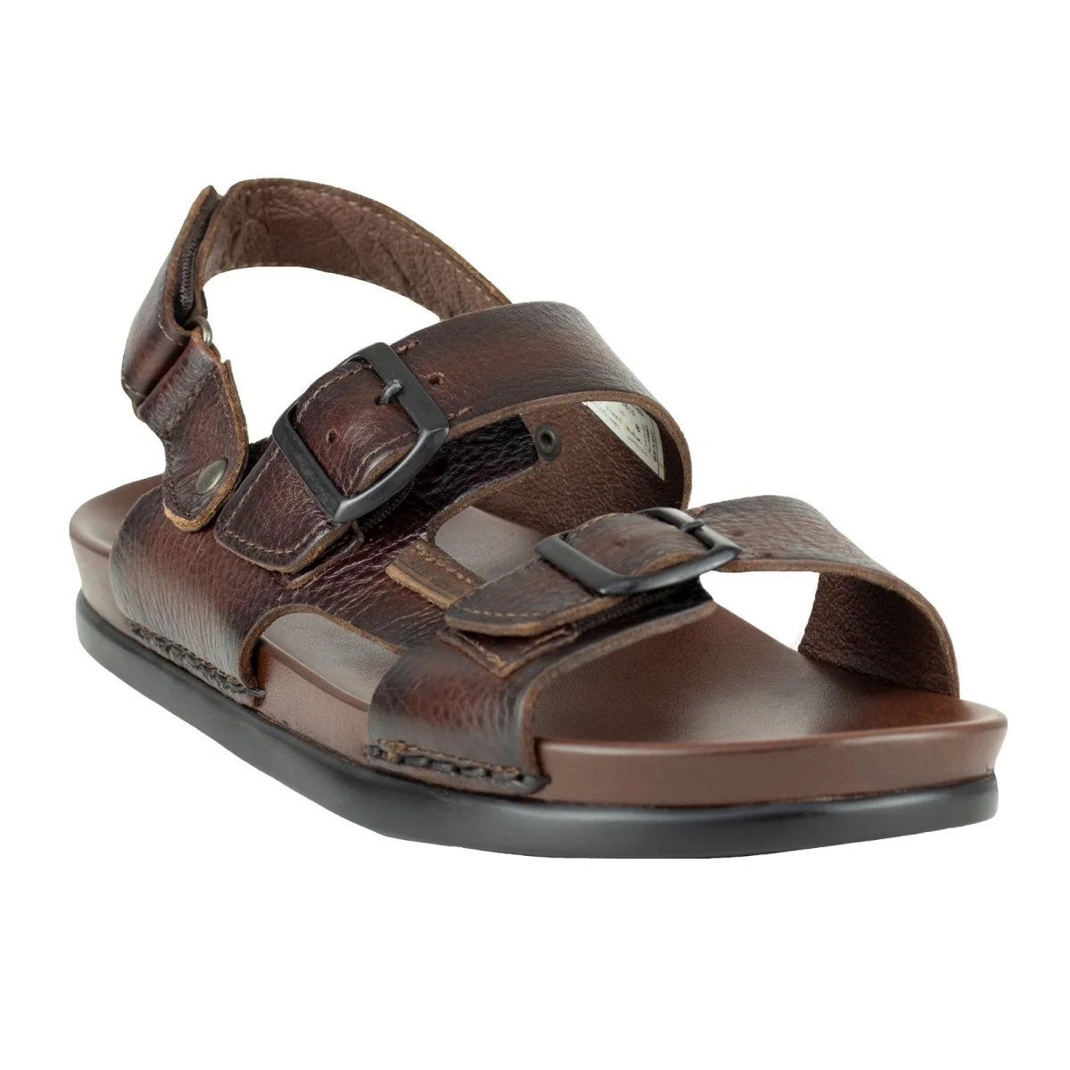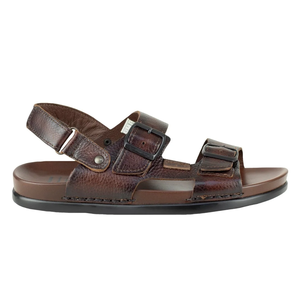 Este modelo destaca por su diseño robusto y masculino, con costuras laterales expuestas que refuerzan la estructura y le dan un toque artesanal. El ajuste mediante hebillas metálicas en la parte delantera y en la correa trasera permite personalizar el ajuste para mayor comodidad y seguridad al caminar. La correa trasera ajustable brinda un soporte adicional, ideal para quienes buscan estabilidad sin sacrificar frescura.