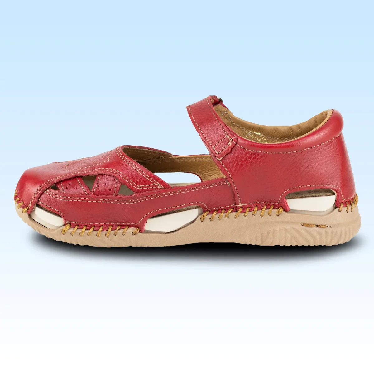 Descubre el modelo 1774, una sandalia cerrada de piel que combina estilo y comodidad. Fabricada en piel de vacuno, este modelo destaca por su diseño graneado que aporta un toque moderno y elegante a cualquier atuendo. Disponible en 3 colores: negro, rojo y camel que permite que se adapte fácilmente a diversas ocasiones, desde un día casual hasta una salida a la playa.