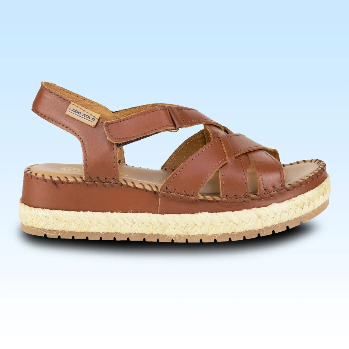 SANDALIA DE PLATAFORMA PARA MUJER LOBO SOLO ENTRESUELA ALTA TEJIDAS COMPLETAMENTE MODELO: 1861 MIEL