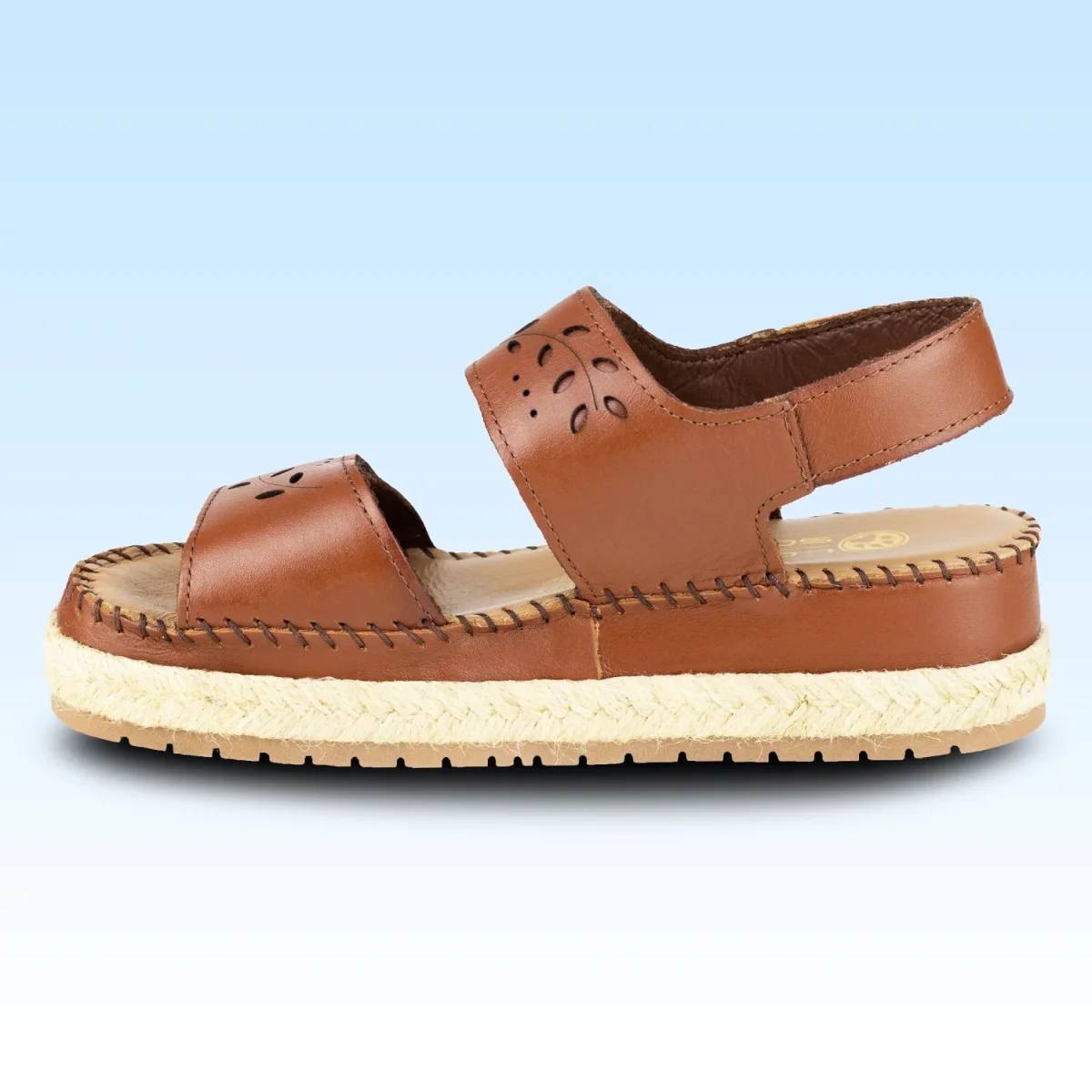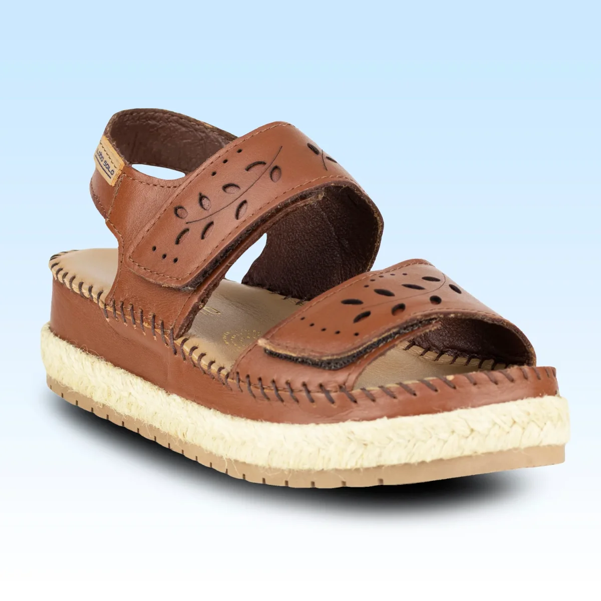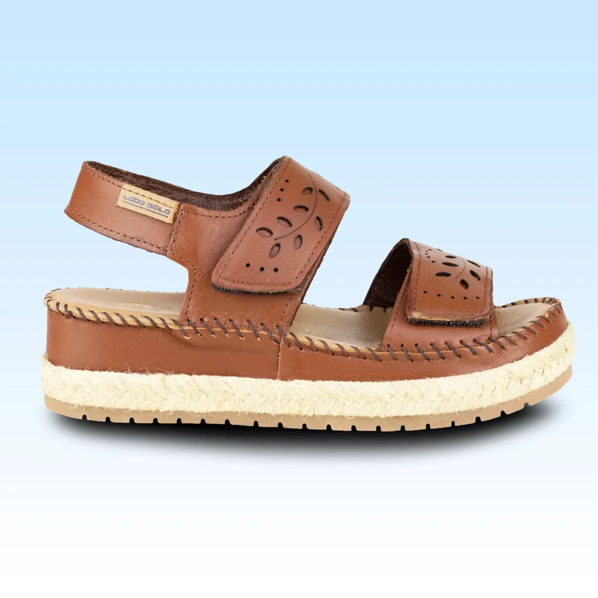 SANDALIA CON PLATAFORMA CORTE CON DISEÑO DE FLORES CORTE VACUNO LOBO SOLO