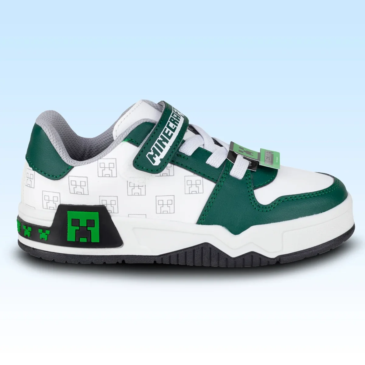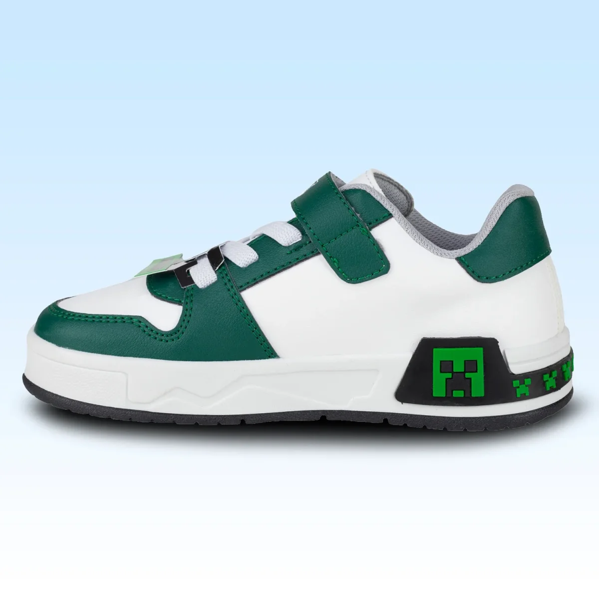 TENIS BLANCO VERDE DE MINECRAFT PARA NIÑOS DEPORTIVO ESCOLAR DISEÑO DE CREEPER ULTRA RESISTENTE Y EXTRA COMOD