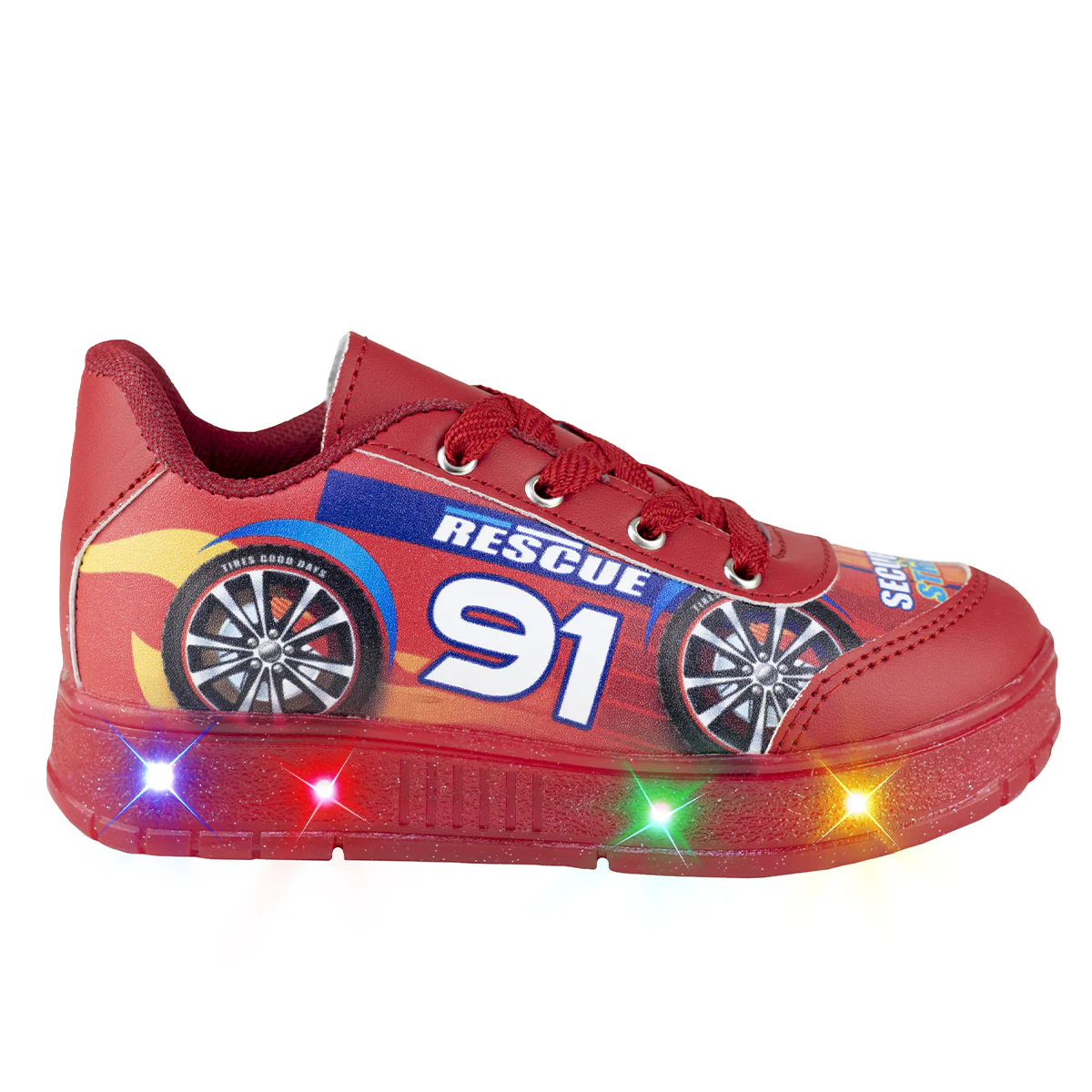 TENIS CHOCLO URBANOS PARA NIÑOS CON LUCES LED DISEÑO DE CARRITO EXTRA LIVIANOS