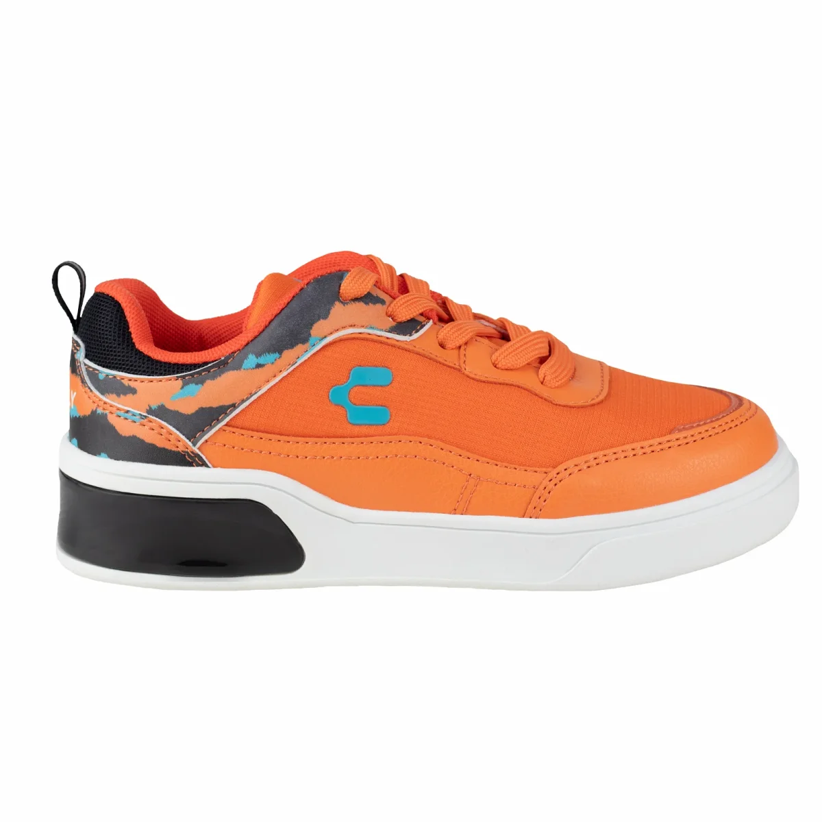 TENIS DE LUCES CHOCLO PARA NIÑO BASICO NARANJA MARCA CHARLY KIDS CON SUELA DE EVA