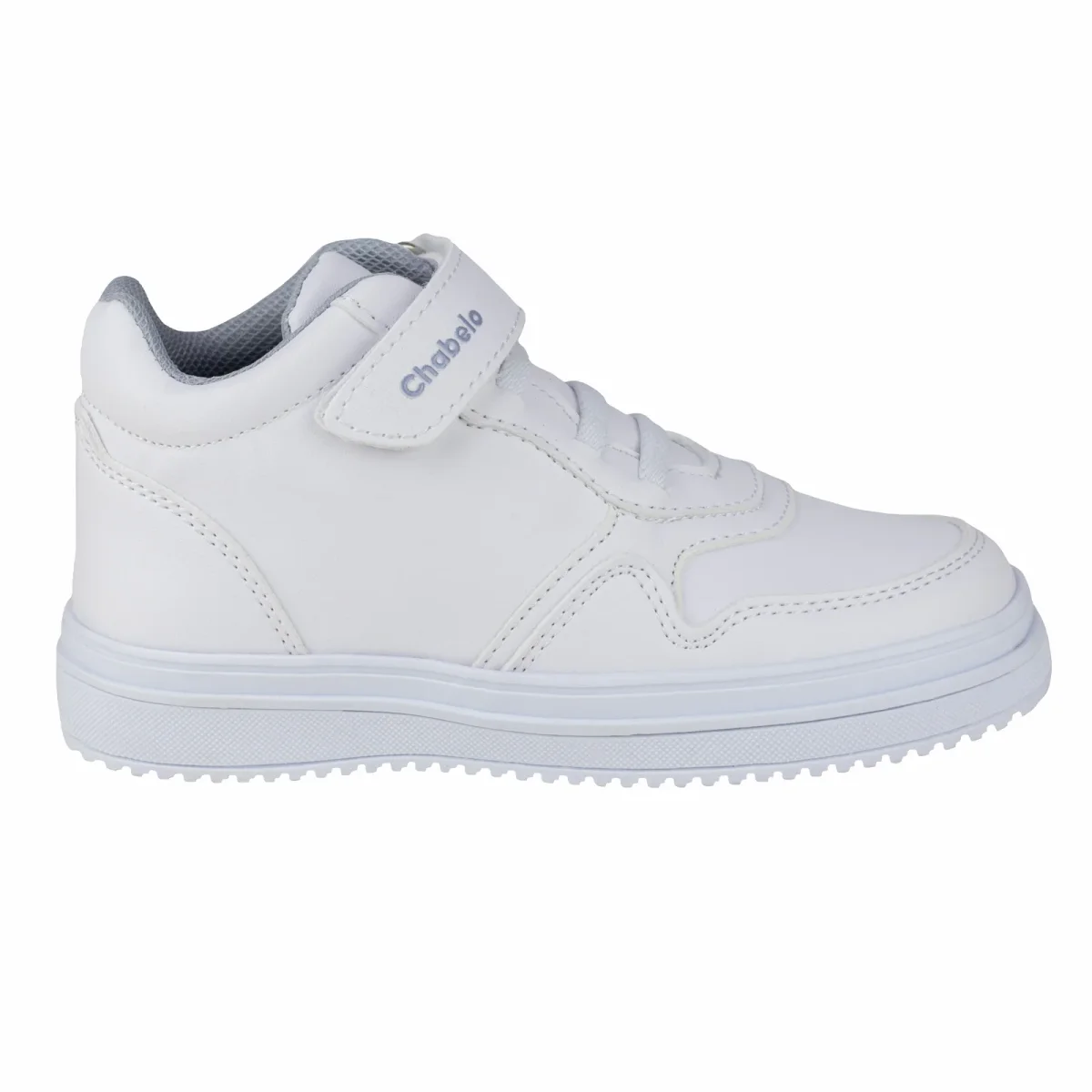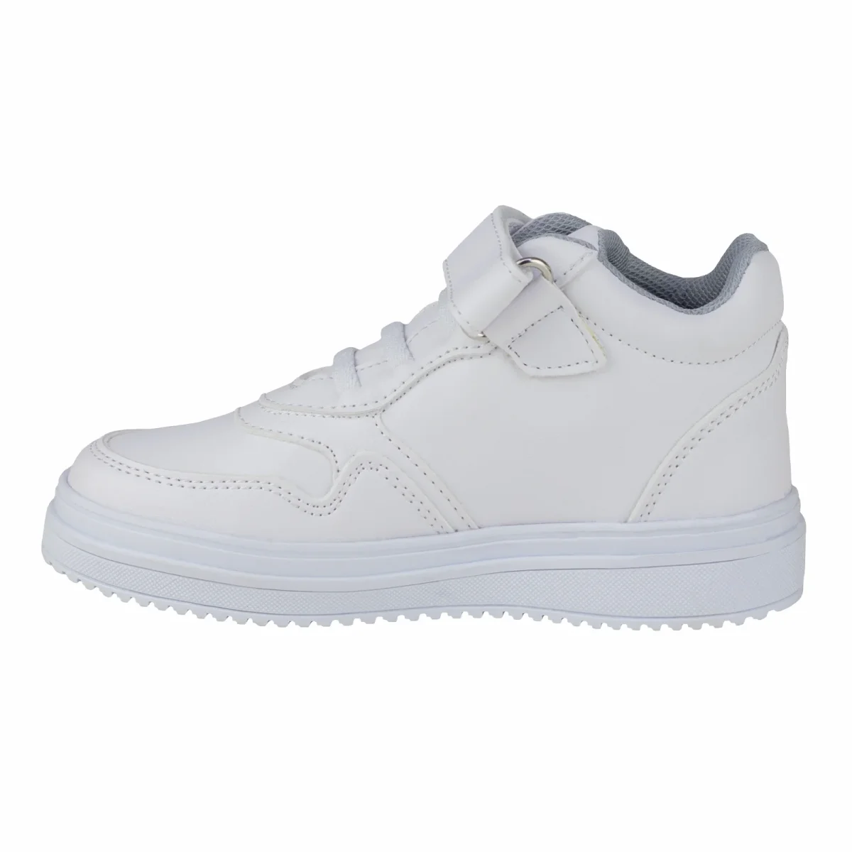 TENIS BLANCO ESCOLAR PARA NIÑO DE BOTA AJUSTE DE VELCRO CON AGUJETA ELÁSTICA