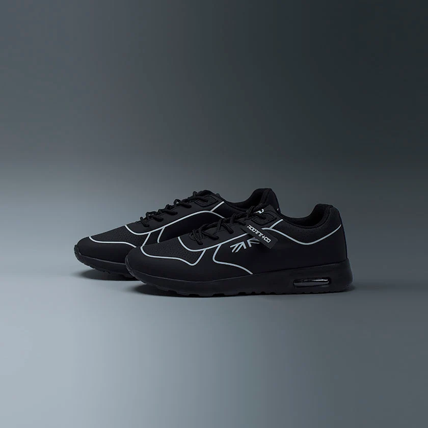 Diseño sofisticado y versátil en color negro total con elegantes líneas blancas de contraste. Perfectos para un estilo casual o deportivo chic.
